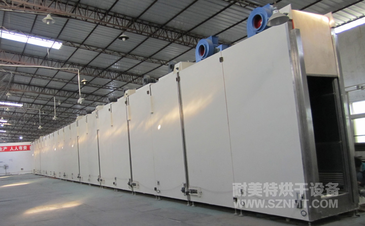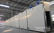 箱體內(nèi)膽尺寸:寬0.9米*高2.9米*長40米; 箱體共分為10段,每段長度=4米,其中預熱2段,烘干4段,程序降溫3段,強制冷卻1段;